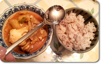 チゲとご飯を一緒にすくう時にとっても食べやすいんです。