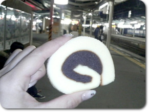 薄く焼いたカステラに餡を巻いたロールケーキといった感じで、