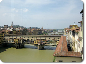 廊下の窓からアルノ川、