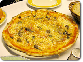トマトソースにアンチョビとチーズ、オリーブが乗っていて、生地は薄め。