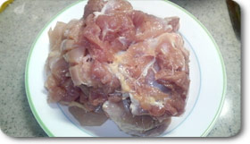 皮を取り除き、余分な脂肪もとった後の、ぷりっぷりのもも肉です。