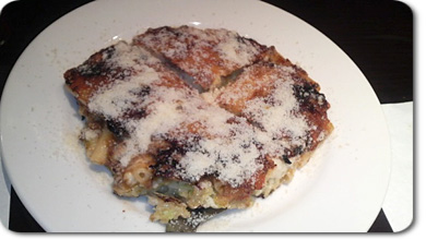 焦げたチーズで出来ていて、仕上げに粉チーズをかけてくれました。