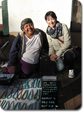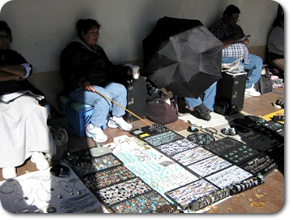 民芸品を自分の前に並べ、お客さんと話しをしながら、商売が行われます。 |