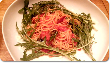 私が気に入ったのは、トマトのブッタネスカとルッコラのパスタです。 |