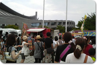 また、この屋台の向かい側には、その日に出演するアーティストのグッズブースも立ち並び、大行列が!
