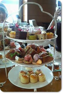 小さなサンドウィッチや、スコーン、タルトなどが乗っている、それはそれは豪華な“アレ”です!!