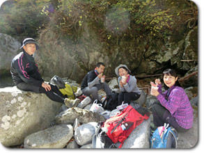 駐車場で登山ウェアに着替え、いざ渓谷へ。