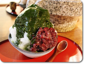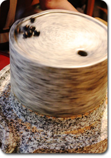 お豆屋さんでは、わらび餅にかけるきな粉を、 石臼を使って黒豆からひきました。