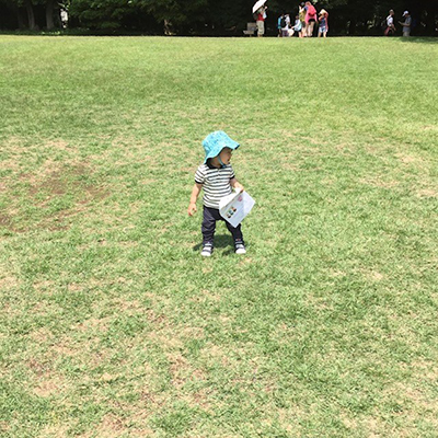 初めての遠足。まだよちよち歩き。