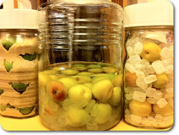 今年は氷砂糖と、もうひとつきび砂糖を使ってみました。 そして、中央の大きなビンは梅酒です。 梅酒は初めて作ります。 うちに帰るといつもビンを揺らして まだか、まだかと様子を見ています。 梅は香りがとってもいい。 一粒ずつ丁寧に洗って、拭いて、おへそを取る…。 この作業が一番幸せな気持ちになります。 梅雨の時期はこんなことで 清々しい気持ちになります。