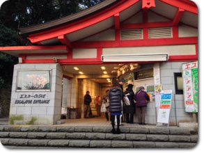 江の島の頂上までをいくつかのエスカレーターで