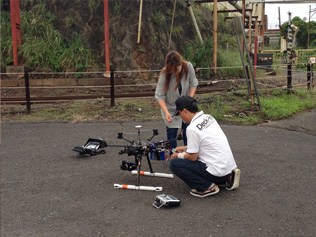 今回の撮影では、カメラを付けて小型のヘリを飛ばす手法を用いました。