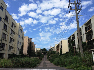 静かになった団地の真ん中を一人で歩いていると
