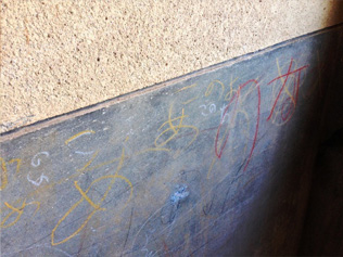 静かにね、という意味ですよね。炭坑の島ならではの光景です。