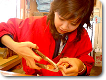 硬い甲羅を割ります。さっきまでの姿を思うと申し訳ないなぁ