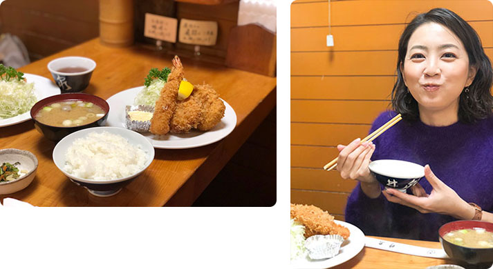 盛り合わせ定食があまりにもおいしくって夢中で食べてしまいました。