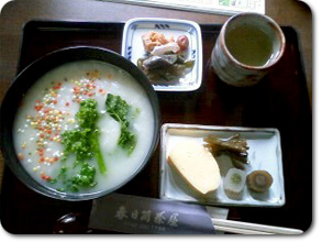 そして、そのお店では菜の花が入ったおかゆを食べました。