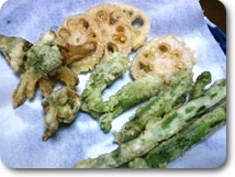 またある日の食卓には、春野菜の天ぷらがあがりました。 |