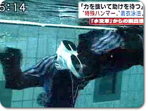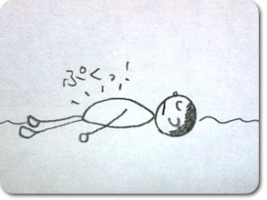 とにかくまずは冷静になること。 この言葉は、いつも聞いていてわかっているつもりでしたが、 実際に着衣水泳を始めた途端、それが如何に難しいことなのかがわかりました。 プールだとわかっていても、 頭がパニックを起こしてしまい、とにかく慌ててしまうのです。 また今回体験をしていて本当に驚いたのは、 昔わたしが教わった着衣水泳は方法が見直されているということでした。 わたしは、とにかく出来るだけ早く、 まとっているものを脱ぎ、泳ぐということを教わりました。 ところが今は違うんです。 状況によって、その判断はさまざまですが、 まず基本は服や靴は脱ごうとせず、とにかく浮くこと。 これってわたしが習っていたこととまったく逆なんです。 本当に驚きました!だからこれを書こうという気になったくらい驚いたんです。 水温が冷たければ、服を脱がないほうが体温を保てます。 靴は物にもよりますが浮くことがあります。 リュックを背負っていたから助かったというケースも実際にありましたよね。 服を脱ごうと動けば動くほど、体力を消耗します。 …というわけで、浮くことが最初のステップ。 そして浮く方法にもいろいろあり、 ・ 体をTの字型にしてみる