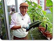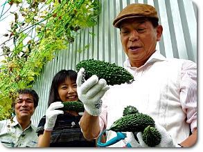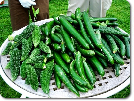 この日もやや大きく育ち過ぎたゴーヤときゅうりが