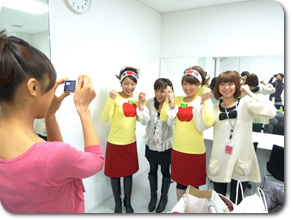 りんご娘の間にいるのが愛媛朝日テレビのお二人。