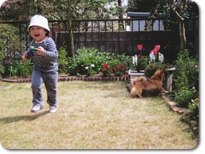 芝生の上でマロンちゃんも娘さんも楽しそう!!