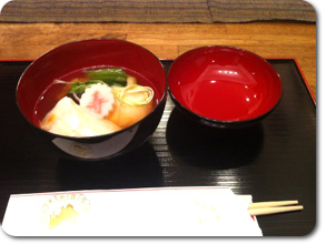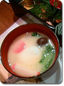 お店で京都白味噌仕立てのお雑煮をいただきました。
