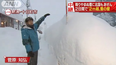 雪の中、冷たい風の中、極寒の中、何時間も取材を続ける、