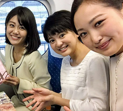 写真は車内でお弁当を食べながら女子トークをしているところ。