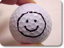 ボールに書いたこのニコちゃんマークを見れば元気復活! |