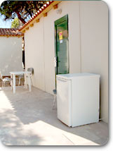 クーラーがあれば、当然冷蔵庫。と思うでしょう。一応あることにはあったんですが、なんと、外においてありました。灼熱の太陽の下の冷蔵庫。ちゃんと冷えてくれるのかな。