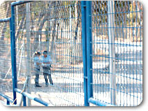 フェンスを乗り越えて!!!嘘、嘘 うそうそ、そんなことしたら自動小銃で即撃たれちゃう。