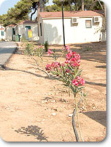このアギオスアンドレアス・メディアビレッジはもともとギリシャの軍隊の人々のためのリゾート施設なんだそうです。なかなか素敵ですが、周りは赤土。ギリシャの変わった花も咲いていて、花大好きな私としてはうれしい限りなんですが、実は、急に植えましたよっと言う感じで、ぱらぱら花が咲いている状態なんですね。本当は芝生を張ってすべて緑にしたかったらしいんですが、間に合わなかったんですって。
