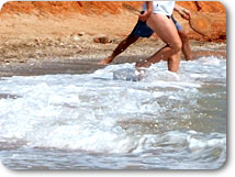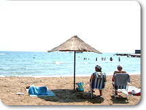 それもこの海はただの海じゃありません。エーゲ海、あのエーゲ海ですよ。エーゲ海で海水浴なんて・・・・。遠くには島々もちらほら見えるし、もう最高!