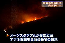 慌ててマイクをジャックに差込んで「ええ、こちらアテネ。競技場から数キロはなれた山で今火の手が上がっています」とリポートを始めました。