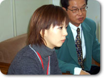 「体験談ですか、もうホントどこから話せばいいのか・・・、2年前ですよね、 2年前の今頃…ちょうど私たちの代からインターネットでエントリーするというのが始まったんですけど、 11月、同じ時期ですね。『あなたの目指すアナウンサー像』というものを200字くらいで考えて、 それをインターネット上で打ち込まなければ、エントリーシートが取り出せないしくみになっていたんですよ。 まずそれに驚いて、ホントそれを書くだけでも、何日も何日も考えて、はあ〜、あれがいいかな?こう書けばいいかな?と悩んで。」 |