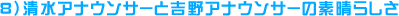 「私の同期の話になるんですけども、カメラテストで清水は本当に流暢に実況ができたんですよね」 | |||