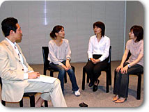 突然ですが、テレビ朝日のアナウンス部には、「女ばかりの三姉妹のそれも末っ子」が異常に(?)多いことが判明しました。野村アナ、佐分アナ、石井アナ、松尾アナと、なんと4人が揃いも揃って三姉妹の末っ子!さらに実は堀越アナウンス部長までもが三姉妹の末っ子なんです!残念ながら仕事で石井アナは座談会には不参加となってしまいましたが、それでは早速皆さんのお話を聞いてみましょう!!司会進行は「男ばかりの三兄弟の次男」の古澤アナです。 |
