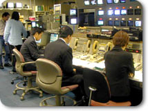 | 本番直前もこの笑顔の松尾アナ。 清水アナはここでも精神集中。 |