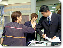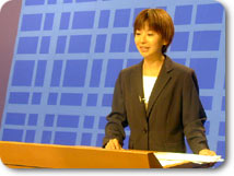 | ■松尾: これからは全て自分で考え、進んでいかなくてはならない。自己管理をしっかりしないといけないので緊張する。 研修を通して感じたことは、アナウンス技術以前に勉強しなくてはいけないことが 沢山ある。 これからは現場に出て色々な出逢いがあると思うし、原稿を読むだけでなく、 色々なものに触れていきたい。 |