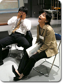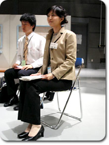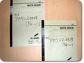 内容も、研修当初は発声が中心だったのが(「3羽のひよこ No.4」をどうぞ)、現在はニュース読み、フリ−トーク、ナレーション、番組のスポンサーを読む練習などが中心になってきています。時には社屋の外に出て、実況やリポートの練習をすることもあります。アナウンサーとして必要な技量を幅広く学んでいる毎日です。 |