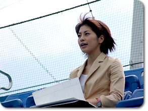 先輩にルールを一から教えて頂く事から始まり、なんとか頭にいれて・・いざ、神宮へ!!私達新人三人は、大学野球の試合で実況の研修させてもらったんです。