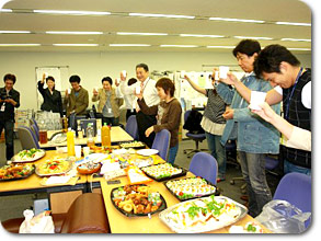1コマ終わったところでお昼の時間に。 アナウンス部に戻ったふたば+谷口さんを迎えたのは…? アナウンス部歓迎ミニ・パーティー♪♪♪ |
