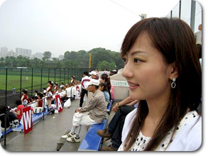 受けた注意 ●バットの先を下から上に振り上げてはいけない!! ●なるべく腕を体に巻きつけるようなスウィングを!! A 試合を取材に行き、選手や監督にお話を伺う。 スタッフの方とスタンドに座って試合を観戦します。 試合中はスコアをつけたり、選手のご父兄に取材をしながら、スタンドの雰囲気を肌で感じます。 また試合終了直後には、その日の注目選手や監督にお話を伺いに行きます。 このような感じであっという間に1日1日が過ぎていきます。 取材を終え帰ってきて少しでも時間がある時は、空いているスタジオで発声練習や原稿読みの練習をしています。 今は野球の勉強と平行してアナウンサーとしての基礎磨きも頑張らなくてはいけません。少し以前より忙しくなりましたが、精一杯毎日を過ごしています☆ |