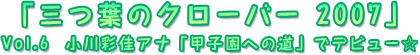 ついに、one of 三つ葉☆小川彩佳アナが 7月24日(火)、「速報!甲子園への道」でデビューしました!! 早いもので、私、島本が「甲子園への道」を担当してから1年が経ちました。 初取材、初インタビュー、初リポート、初ナレーション…。 全てが初めてで、右も左も分からずスタッフの皆さんに支えられながら、 とにかく一生懸命だったあの頃がとても懐かしいです。 さて、彩佳ちゃんも初仕事を楽しんでいるんでしょうか?? 聞いてみました☆ |