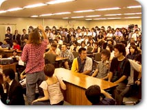 そうです、いよいよ8月24日に始まるパンパシ水泳2002の出陣式が、今まさに行われようとしています。