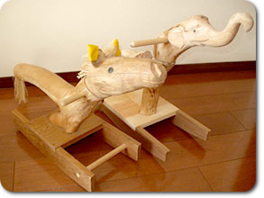 この木馬。ひとつはお馬さんで、もうひとつは象さんです。