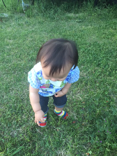 そんなお兄ちゃんの下で育った1歳の妹。さぞかし活動的になるんだろうなぁと思っていたら、対照的にかなりのマイペースな性格で育っております(笑)。気が付くと一人で絵本のページをペラペラとめくっていたり、ブロックのおもちゃでもくもくと遊んでいたり・・・兄のペースに乱されることなく、自分の世界で遊んでいます。1歳を過ぎましたがまだ歩く気配はなく、最近ようやく一人で立てるようになってきました!気持ちの良い気候になってきたので、少しずつ外で歩く練習をしようと思っています。