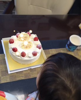 誕生日が近いので、誕生日会も合同です(笑)。娘はケーキに興味津々・・・