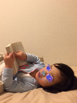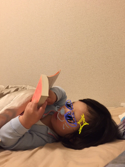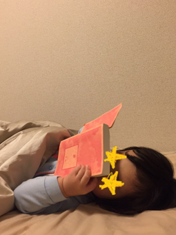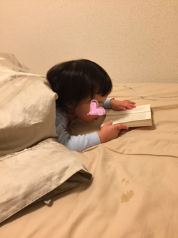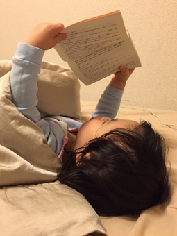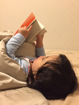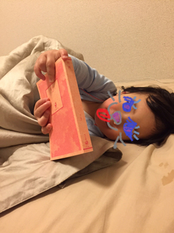 ベッドでうつぶせになって、掛布団を自分でかぶり。